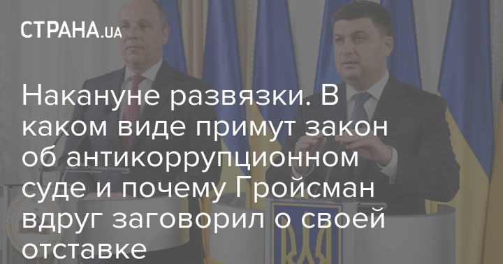 Между тем, в вопрос создания антикоррупционного суда публично вмешался и премьер-министр Украины Владимир Гройсман. На совместном брифинге с главой парламента Андреем Парубием он пригрозил отставкой, в случае если Верховная Рада не примет закон об антикоррупционном суде.