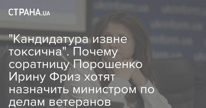 Сегодня стало известно, что на должность главы Министерства по делам ветеранов хотят назначить Ирину Фриз - ныне депутата от БПП, а ранее - пресс-секретаря и личную помощницу Петра Порошенко. Фракция БПП уже поддержала ее кандидатуру.