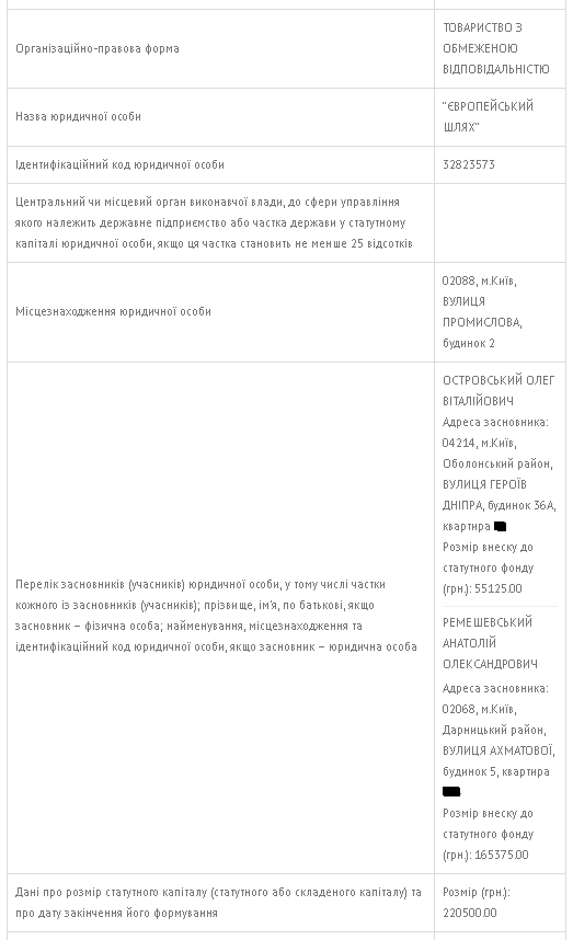 По тому же адресу зарегистрирован его отец как учредитель ООО "Европейский шлях". В этой фирме отец "мажора" владеет долей в 25%: