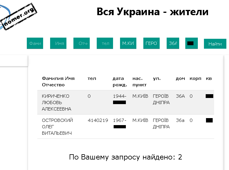 По данным базы nomer.org, где публикуются неофициальные данные о прописке жителей Украины, по этому адресу была прописана также Любовь Кириченко, 1944 года рождения: