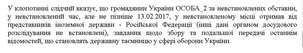 Для общественности же прокуратура области сообщила, что пенсионер собирал секретные сведения об оборонных заказах Украины.