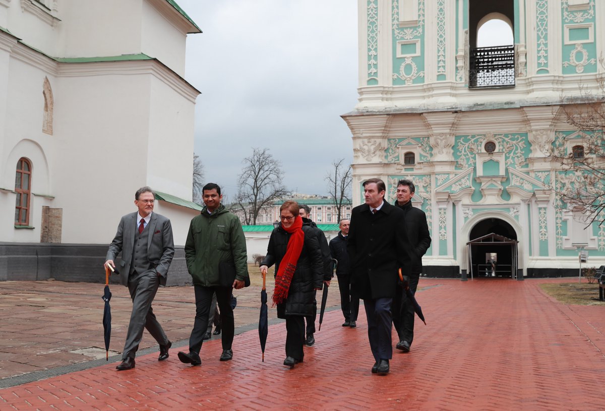 Американская делегация в заповеднике "София киевская", Дэвид Хейл (крайний справа) Джордж Кент (крайний слева), twitter.com/USEmbassyKyiv