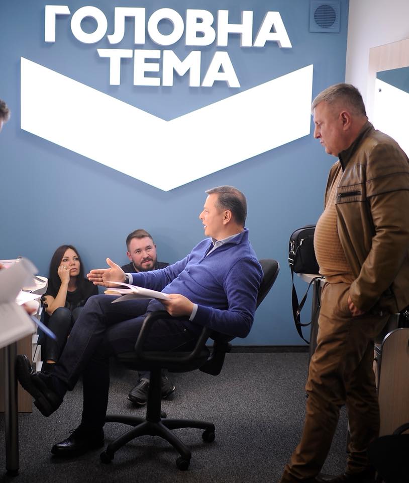 Лидер Радикальной партии Олег Ляшко (в центре) с командой готовится к эфиру на телеканале Рината Ахметова "Украина". Сидят: Виктория Сюмар, Андрей Лозовой, за спиной у Ляшко - член политсовета РП актер и сценарист Марк Гресь, фото: facebook.com/O.Liashko