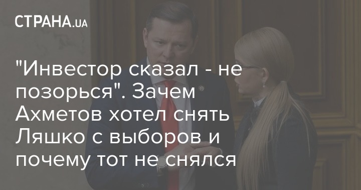 "Можно предположить, что это был сложный разговор. Возможно, Олег доказал собеседнику, что верить Тимошенко до конца нельзя. Выйти из кампании значит, скорее всего, отказаться от той же фракции в будущем парламенте. Мол, пусть будет маленькая, но точно своя", - размышляет собеседник. Он также полагает, что на позицию Ахметова повлияли и его тесные связи с Петром Порошенко, которому невыгодно усиление позиций Тимошенко, что случилось бы в случае снятия Ляшко.