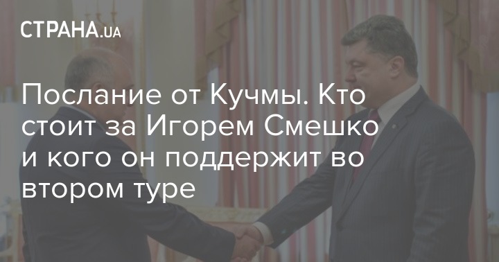 Так, источник в окружении Смешко утверждает, что баллотироваться ему предложили экс-президент Леонид Кучма и уполномоченный представитель Украины в трехсторонней контактной группе по мирному урегулированию ситуации в Донецкой и Луганской областях Евгений Марчук.