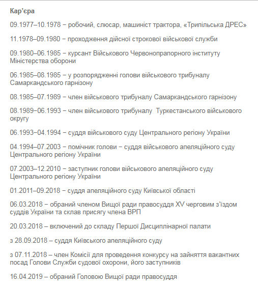 Согласно официальной биографии, с 1985 по 1993 годы Говоруха работал судьей в военном трибунале Туркестанского военного округа.