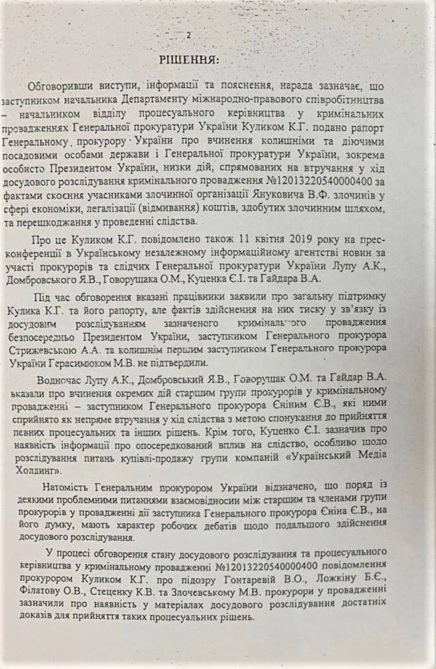 Подноготную этого процесса вскрыл журналист Бойко. Он обнародовал протокол оперативного совещания прокуроров по "делу Курченко" под председательством Луценко. Из него следует - представители Департамента международно-правового сотрудничества ГПУ встали горой за Кулика. Подчиненные выведенного из дела прокурора заявили о наличии необходимых доказательств для объявления о подозрении Филатову, Ложкину, Гонтаревой и Стеценко.