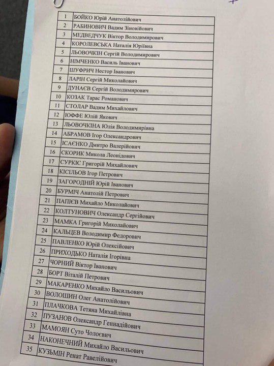 Такой список "Оппозиционной платформы" с минимальными правками (поменяли местами Юлию Левочкину и Михаила Папиева и внесли в список Илью Киву) утвердили на съезде