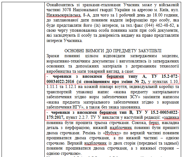 Цены на обувь выросли: 25 тыс пар демисезонных ботинок по все тем же техническим условиям ТУ 15.2-072-00034022:2016 были проданы по 1815 грн за пару. А 13 тыс пар летних ботинок силовики взяли по цене 1596 грн.