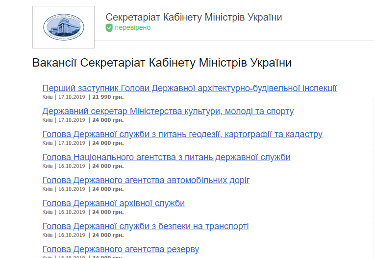 На днях Секретариат Кабмина выставил десятки объявлений о поиске сотрудников на онлайн-ресурсе rаbota.ua. Через рекрутинговый сайт в Кабмине хотят найти кандидатов на довольно высокие государственные должности.
