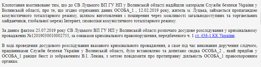 На Волыни в этом году местное СБУ обнаружило, что житель Луцка занимается "пропагандой коммунистического тоталитарного режима" путем распространения "символики режима" через торговые площадки в Интернете.