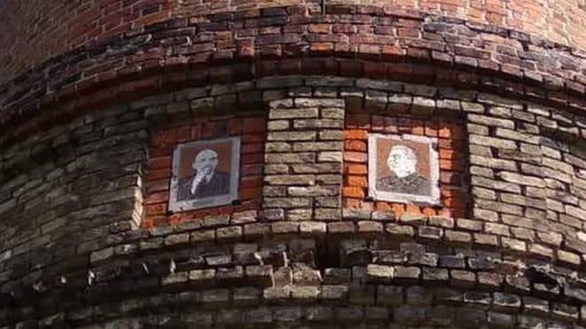 В другом краю страны, в городе Новгород-Сиверский на Черниговщине, объектом расследования стала мозаика на местной водонапорной башне. В конце 1930-х годов местный мастер Веремеенко разместил на ней мозаичные изображения Ленина и Сталина.