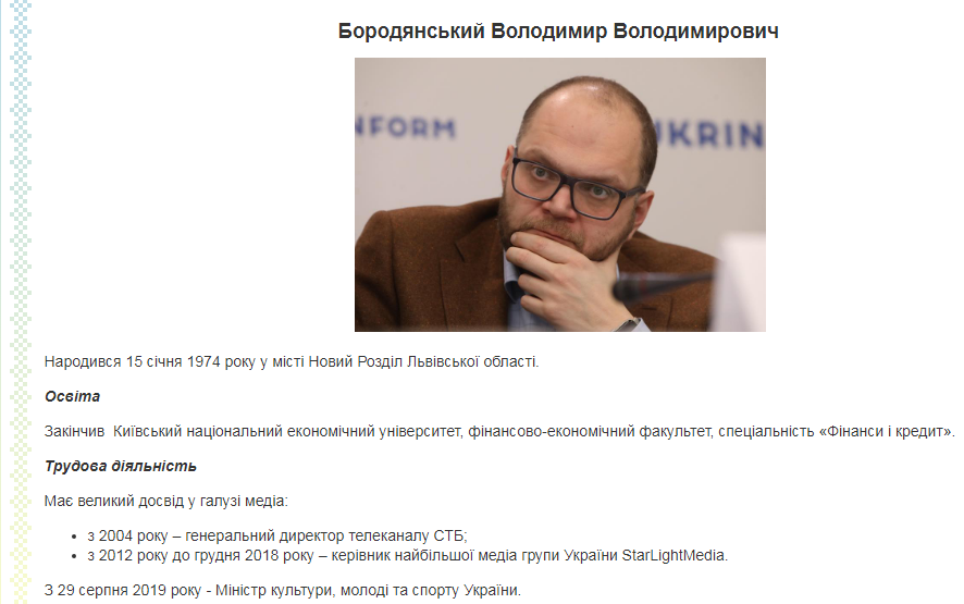 Министр культуры, молодежи и спорта Владимир Бородянский за недолгое время руководства министерством уже не раз прославился скандальными заявлениями  в стиле предыдущего президента.