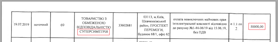 Руководство партии тоже поучаствовало в "освоении" партийных денег. Партийный лидер Святослав Вакарчук не побрезговал получить 50 тысяч гривен на принадлежащее ему ООО "Суперсимметрия".