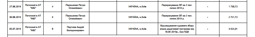А еще из партийных денег была возмещена сумма судебного сбора (3,5 тыс грн ) известному юристу Андрею Портнову, который судился с партией экс-президента. Речь идет об иске Портнова к Блоку Петра Порошенко "Солидарность" с требованием опровергнуть опубликованную на их веб-сайте информацию, что юрист Андрей Портнов подозревается в государственной измене.
