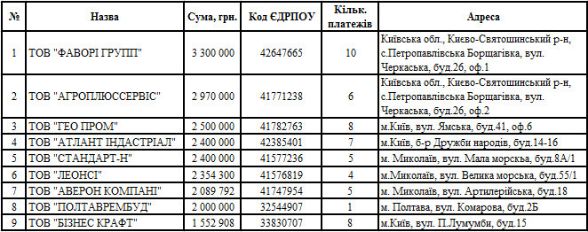 Первые четыре фирмы нигде особо не "засветились", поскольку были созданы относительно недавно. А вот три следующие компании "Стандарт-Н", "Леонси" и "Аверон компани", прописанные в Николаеве, проходят по одному уголовному производству № 42017000000004297 по отмыванию средств и уклонению от уплаты налогов в особо крупных размерах, которое ведет Государственное бюро расследований. Об этом сказано, например, в одном из определений Киевского апелляционного суда: