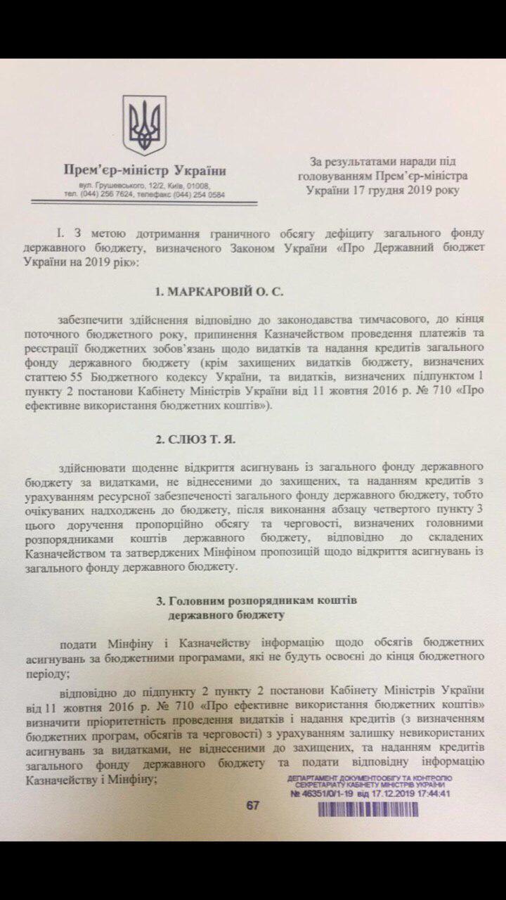 Распоряжение Алексея Гончарука. Фото: Telegram/Тёмный Рыцарь