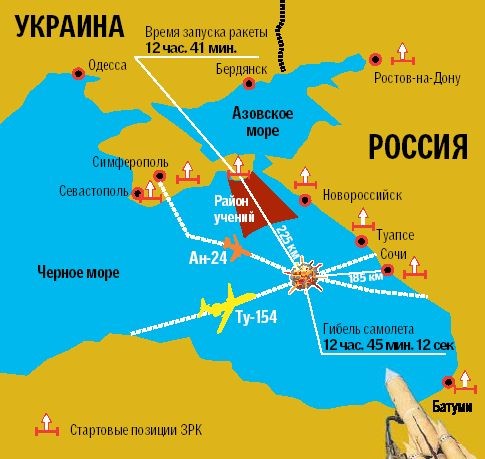 Военные говорили, что причиной попадания украинской ракеты в российский самолет могла стать ошибка оператора зенитно-ракетного комплекса. Обнаружив несколько объектов в небе, он мог "подсветить" в качестве цели для ракеты более мощный объект, которым оказался Ту-154. А учебная цель была малозаметна, и поэтому оператор мог проигнорировать ее.