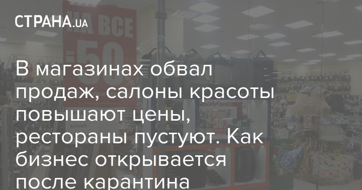 Украина постепенно выходит из карантина. С 11 мая введены послабления для ресторанов и сферы услуг. Открылись многие непродовольственные магазины. В Киеве, Львове и Черновцах торговые центры пока не работают (предположительно они могут открыться  только с 22 мая), но во многих регионах со вчерашнего дня они уже доступны для посетителей.