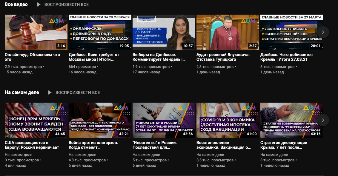 "Дом" - украинский госканал, который уже больше года вещает для жителей неподконтрольных территорий Украины - Крыма и Донбасса. Исключительно на русском языке.