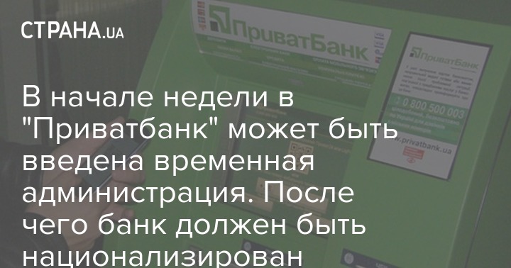 Тем временем, источники "Страны" в Национальном банке и в Фонде гарантирования вкладов, подтверждают информацию, что в начале следующей недели в "Приватбанке" может быть введена временная администрация. А к концу недели банк должен быть национализирован.