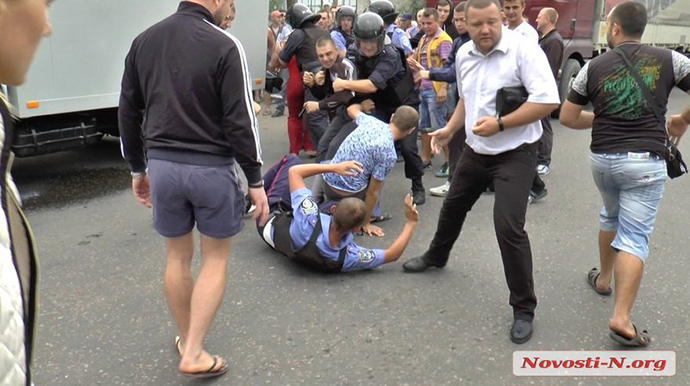 Полиция с трудом отбила полицейских, которых могли линчевать, фото: ТСН