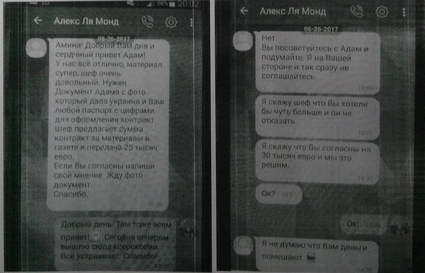 В ответ "Вернер" сообщил ей, что материал авторства Окуевой был позитивно встречен редактором французской газеты. И ей с Осмаевым издательством предлагается подписать контракт на 25 тысяч евро. В такую сумму якобы были оценены серия печатных публикаций с участием "добробатовцев" и цикл видеозаписей для телевизионной передачи.