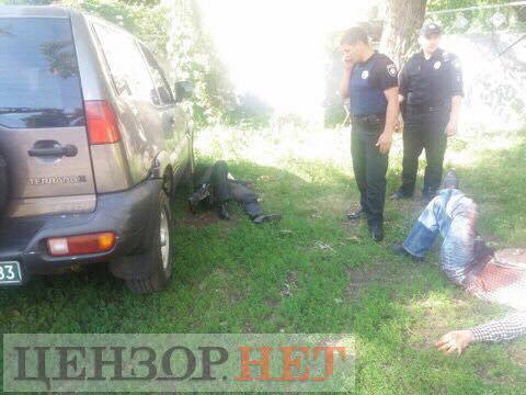 Раненые "Динго" (в деловом костюме) и Осмаев на месте перестрелки 1 июня, фото censor.net.ua