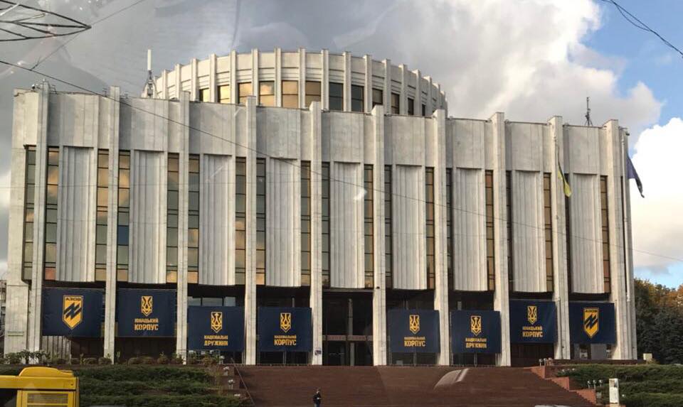 Украинский дом еще с пятницы увешен символикой "Национального корпуса" и "Азова"