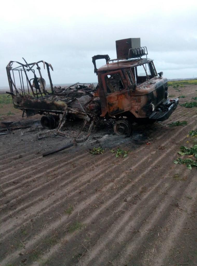 Сгоревший ГАЗ-66, за рулем которого Сорочан видел Сергея Скуратовского, источник фото: kievvlast.com.ua