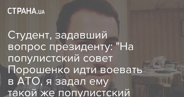 "Страна" нашла этого молодого человека. В эксклюзивном интервью он рассказал о том, почему решил спросить Порошенко об АТО и его детях, об отношении конфликту на востоке Украины и о том, зачем его искала СБУ.
