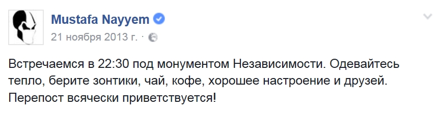 21 ноября тоже все могло закончиться ничем. Количество людей, вышедших "выпить кофе" с Мустафой Найемом, не впечатляло, да и настроены они были отнюдь не агрессивно.