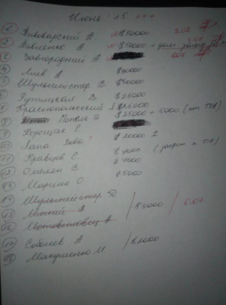В сети можно найти фотокопию неофициальной "платежной ведомости", судя по которой, Бейлин выплачивал теневую зарплату ряду высокопоставленных чиновников Министерства инфраструктуры и МинАПК в размере от $3 тысяч до $50 тысяч. В числе получателей нелегального кэша и экс-министр инфраструктуры Андрей Пивоварский, его зам — Владимир Шульмейстер, а также нынешний министр инфраструктуры Владимир Омелян.
