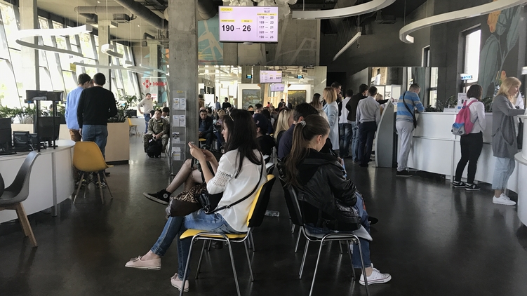 На площади Леси Украинки в Киеве находится самый современный паспортный стол. Даже назвать его так язык не поворачивается: документ-сервис "Готово" – небо и земля в сравнении с неизменными с советских времен коридоров миграционной службы. Здесь кафе, современные фотокабинки и зеленый газон. А еще – километровая очередь с семи утра.
