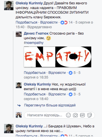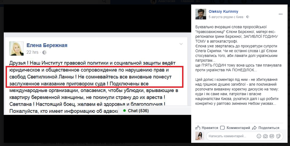 В комментариях он признавался, что никакой эмпатии (сопереживания) по поводу смерти Бережной у него нет.