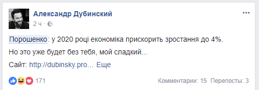 Журналист Александр Дубинский позволил себе фамильярный выпад в адрес президента. "Порошенко: у 2020 році економіка прискорить зростання до 4%.