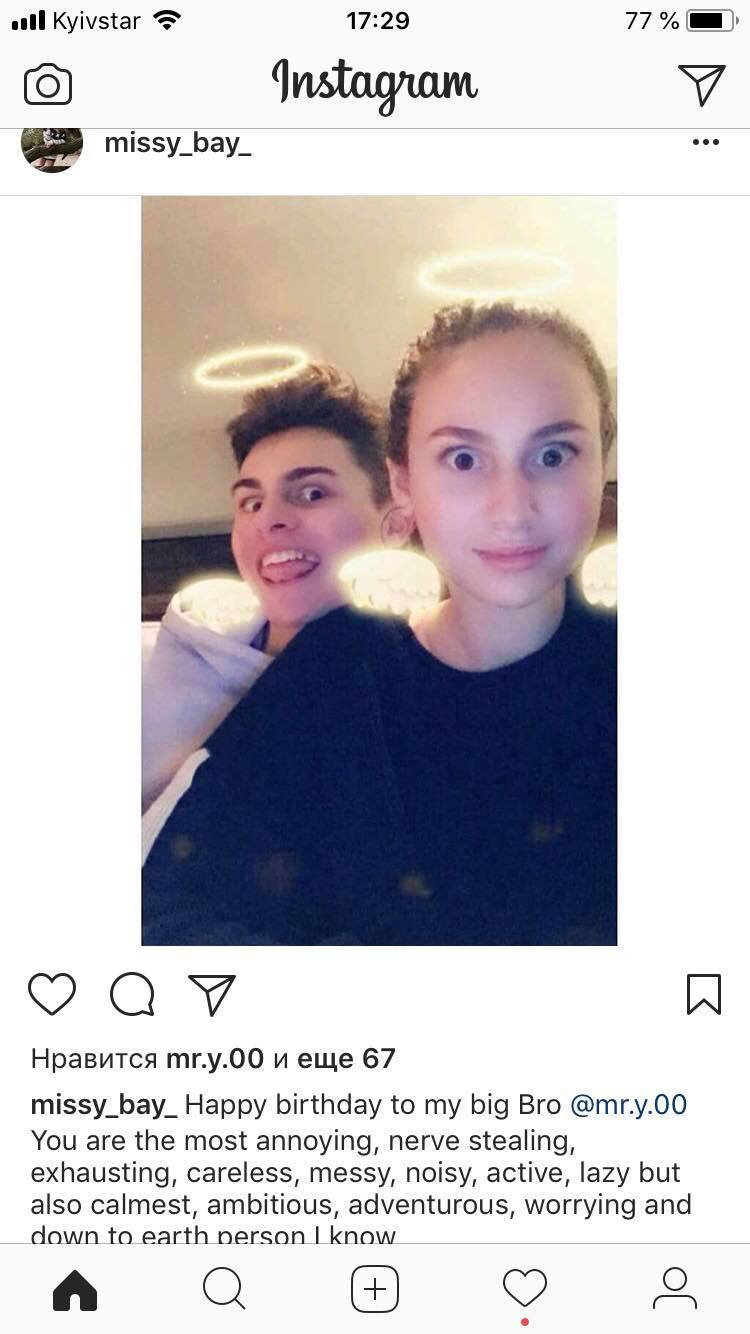 На днях старшему сыну мэра Кличко исполнилось 18 лет. В социальных сетях брата поздравила младшая сестра Лиза-Виктория. Она выложила смешное совместное фото с Егором-Даниэлем и высказала свое восхищение в шуточной форме. Мол, "ты самый раздражающий, нервный, небрежный, грязный, шумный, активный, ленивый, но и самый спокойный, амбициозный, авантюрный, волнующий и ошеломляющий человек, которого я знаю".