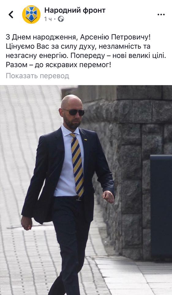 На фоне таких искренних и горячих слов соратницы, официальное поздравление Арсению Петровичу, размещенное от имени партии "Народный фронт" смотрится откровенно тускло.