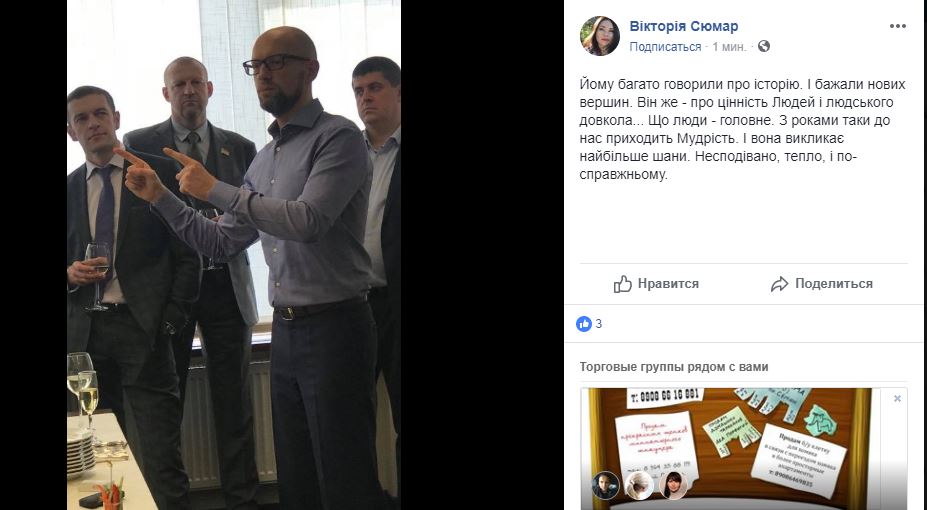 "Есть люди, которым Господь "выписал" особенную жизнь. Не линейную. Скорее похожую на американские горки. Он из таких. Один из самых молодых и интеллектуальных украинских политиков, которому уже в 40 лет пришлось взять ответственность за экономику страны во время серьезного кризиса и войны. Как сложно это было - знают единицы. Но уже через несколько месяцев это оценили миллионы украицев, снова избрали его премьером...", - пишет Сюмар.