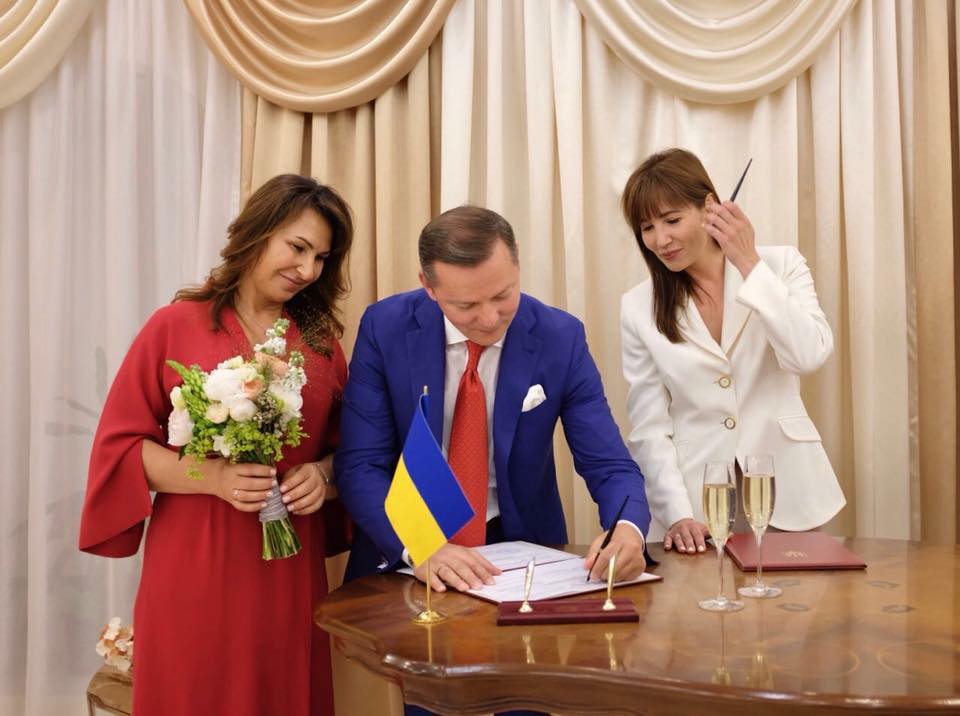 Церемония состоялась в одном из загсов Киева. Невеста Росита надела красное платье, а народный депутат под свой костюм подобрал красный галстук.