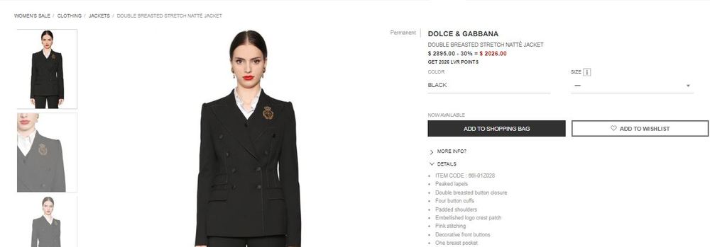 Стоит такой пиджак $2895 или около 76 000 гривен по курсу НБУ на 07.06.2018 года.