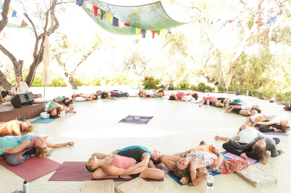 Фестивалят в храме под открытым небом GAYATRI MANDIR, где встречают рассветы с видом на Ионическое море.