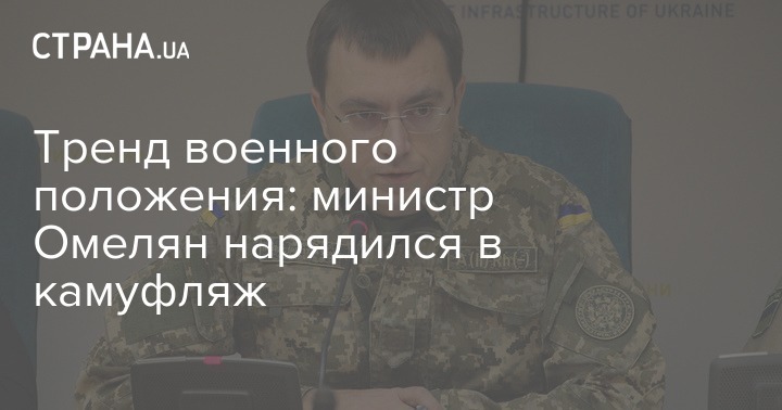 Владимир Омелян, министр инфраструктуры сегодня явился на заседание в своем ведомстве в камуфляжной форме. Министр, а он же супруг дизайнера Светланы Бевзы, заявил, что в связи с введением военного положения в 10 областях Украина вводит дополнительные меры по обеспечению охраны и обороны объектов инфраструктуры.