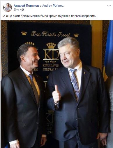 Известный юрист и правозащитник Андрей Портнов запостил себе на страницу в социальной сети Facebook одно из фото, которое взял на официальном портале гаранта и подписал: "А еще в эти брюки можно было кроме пиджака пальто заправить".