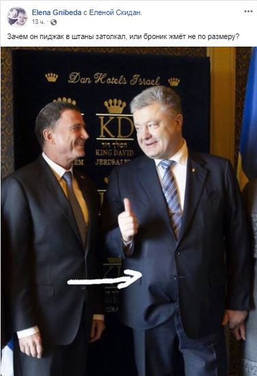 Снова всплывает версия про бронежилет. В этом вопросе мы уже разбирались и общались с экспертами. Источник из государственной охраны объяснил "Стране", что даже бронежилет "скрытого ношения" не способен "выпирать из-под верхней одежды". "Обычно для таких целей используют бронежилет в виде костюмной жилетки. И, кстати, чем выше класс защиты, тем толще пулезащитный пакет, тем сложнее скрыть бронежилет под одеждой", - рассказывал наш собеседник. При этом он отрицает, что Порошенко носит бронежилет под одеждой.