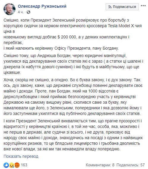 Отметим, что подавать декларацию о доходах господин Богдан формально не обязан. Поскольку есть решение Верховного суда еще во времена Порошенко, который пришел к удивительному заключению, что Администрация президента не является... государственным органом.