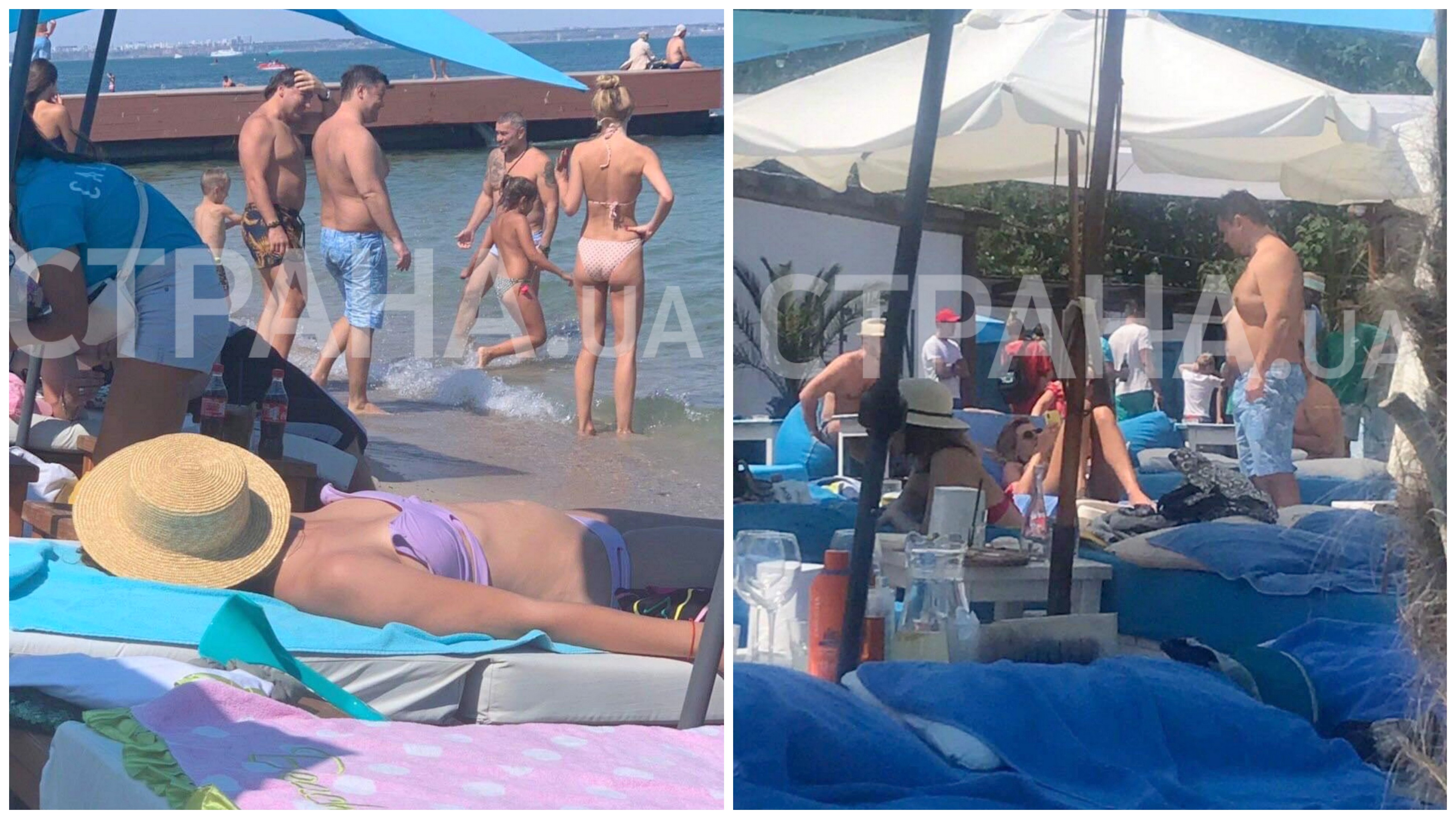 Но вернемся к времяпрепровождению высокопоставленных чиновников в Южной Пальмире. Глава Офиса президента также успел провести время со своей девушкой Анастасией. Мы встретили пару на пляже Caleton в районе Малого Фонтана.