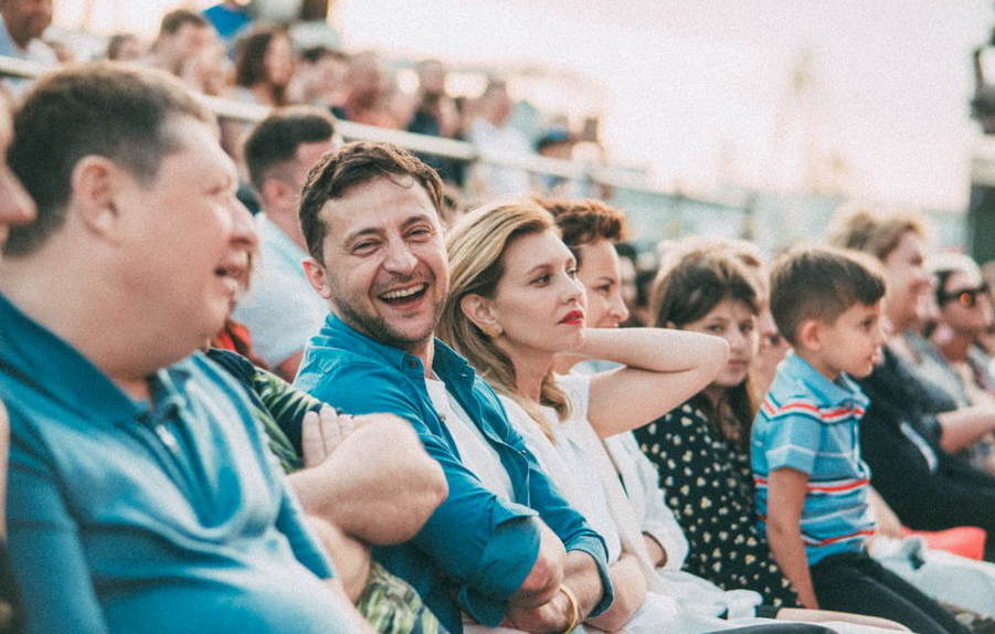 Зеленские сидели в первом ряду, рядом находились Андрей Богдан и Борис Шефир, руководитель студии "Квартал-95".