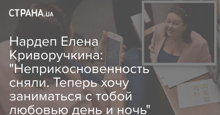 Криворучкина: - Неприкосновенность сняли. Теперь хочу заниматься с тобой любовью день и ночь. Я на заседании Верховной Рады.