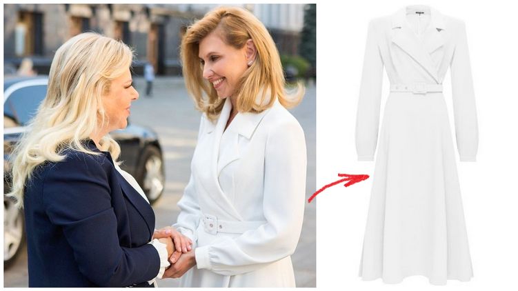 Первая леди Елена Зеленская на встречу с Сарой Нетаньяху - женой премьер-министра Израиля пришла в платье Dafna May. Длинное приталенное платье c рукавами и поясом молочного цвета стоит 12 240 гривен. Состав: 100% полиэстер.